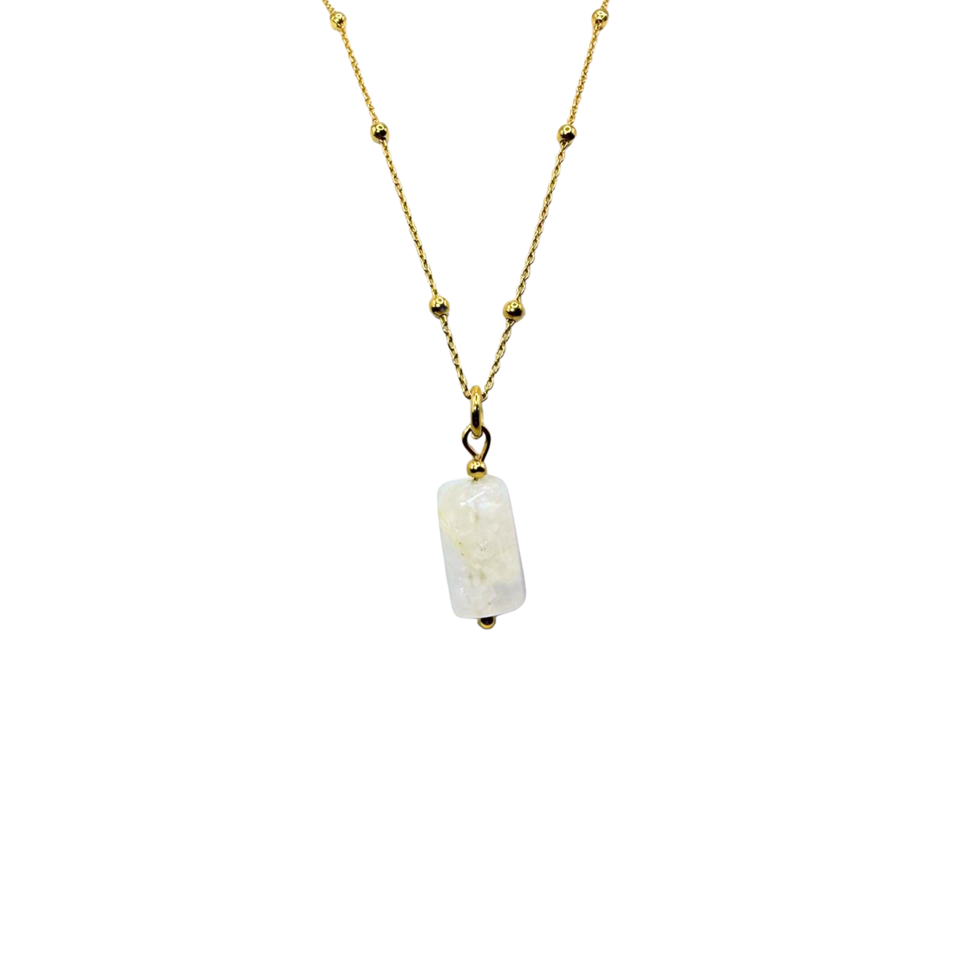 Zawieszka z naturalnym kamieniem na delikatnym, ozdobnym łańcuszku o długości 42 cm.